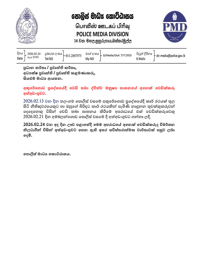 මොණරාගල, පොලීසිය මගින් සිදුකළ විශේෂ විමර්ශනයකදී මෙම සැකකරු අත්අඩංගුවට ගත්බව එම නිවේදනයේ සඳහන් වෙයි .