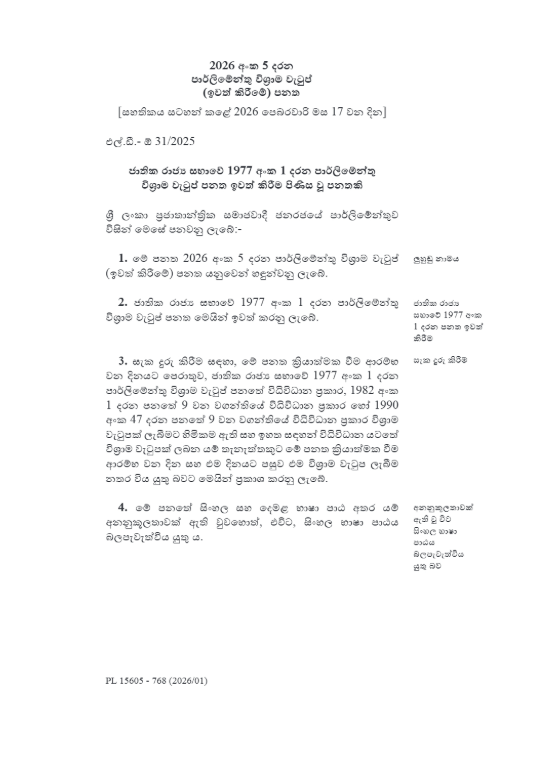 පසුගියදා පාර්ලිමේන්තුවේ වැඩි ඡන්දයෙන් සම්මත වූ පාර්ලිමේන්තු මන්ත්රීවරුන්ගේ විශ්රාම වැටුප් අහෝසි කිරීමට අදාළ පනත ගැසට් මඟින් ප්රකාශයට පත් කර තිබේ .