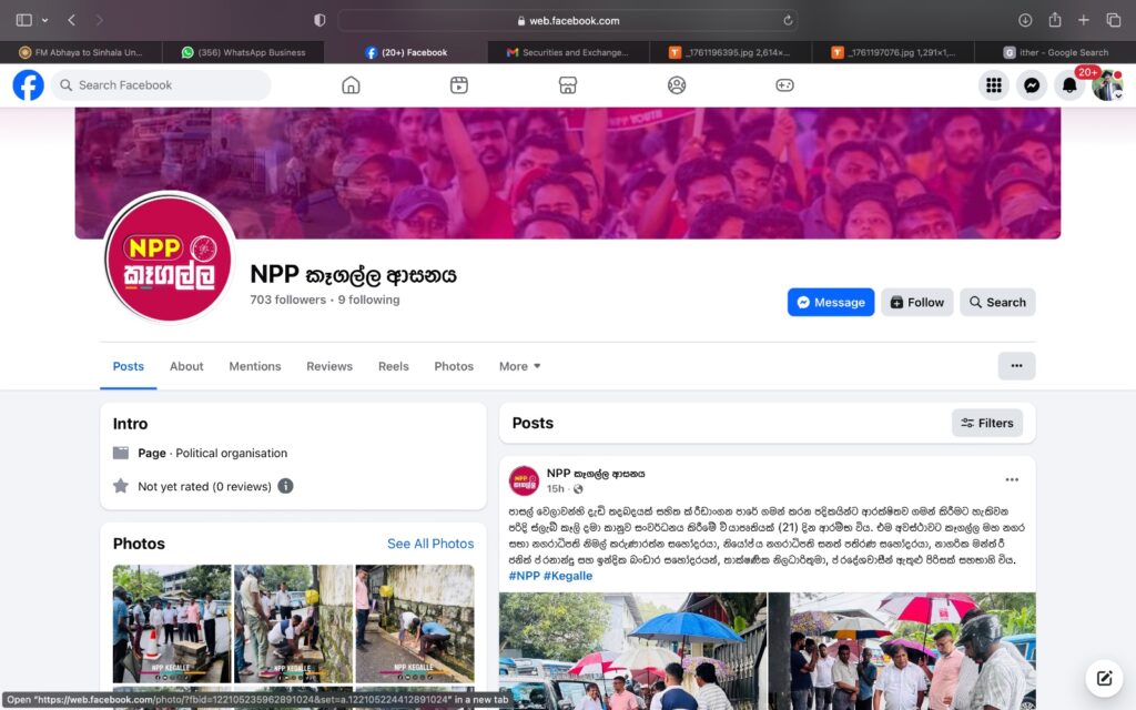 The post on the Kegalle National People’s Power Facebook page regarding this is shown below.