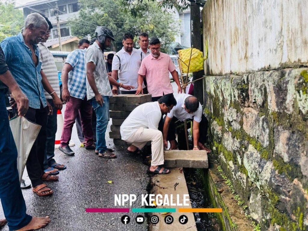 A project to develop the drain by laying slabs so that pedestrians who walk on the heavily congested Stadium Road during school hours can walk safely began on (21). The Mayor of Kegalle Municipal Council, Comrade Nimal Karunaratne, Deputy Mayor, Comrade Sanath Pathirana, Municipal Councilors Janith Fernando and Indika Bandara, Technical Officer, residents and a group of others participated in the event